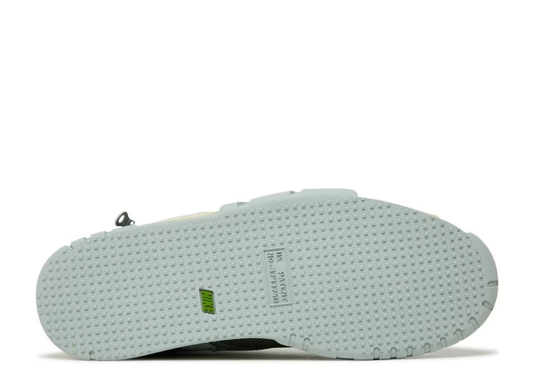 The Travis Scott x Nike Air Trainer 1 SP ‘Grey Haze’ delivers a utilitarian take on a classic ‘80s silhouette. The Houston rapper replaces the shoe’s traditional leather construction with a textile build in a pale aqua finish. Cactus Corporation branding appears on the adjustable midfoot strap and rubberized heel overlay, featuring a stash pocket with zippered closure. Scott’s signature reverse Swoosh graces the medial side, while the rapper’s Cactus Jack logo adorns the perforated nubuck tongue. A removable ripstop shroud (which can be stored in a tongue pocket when not in use) can be snapped onto the upper for protection against the elements.